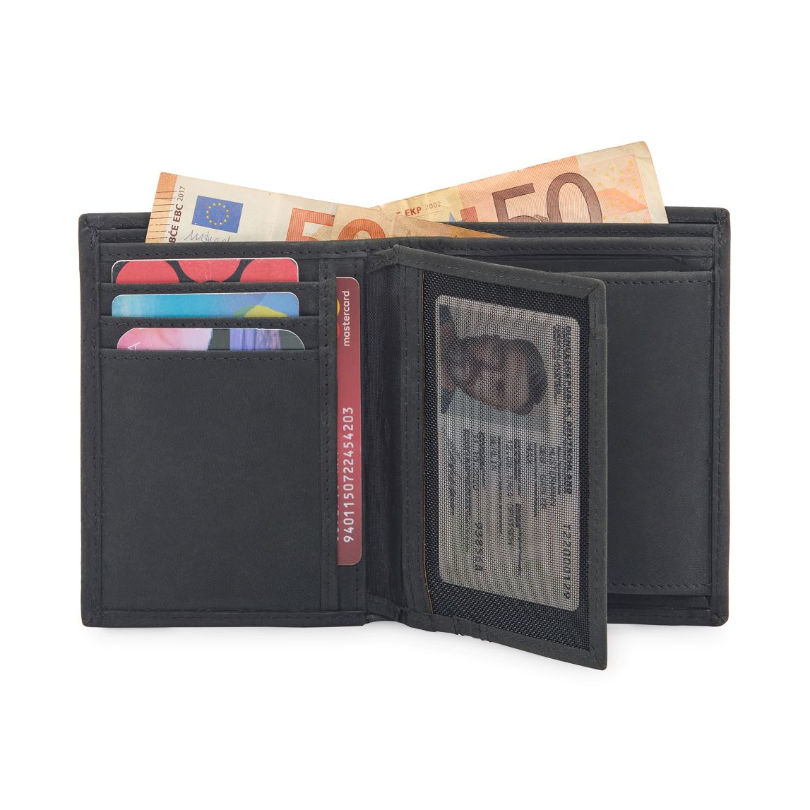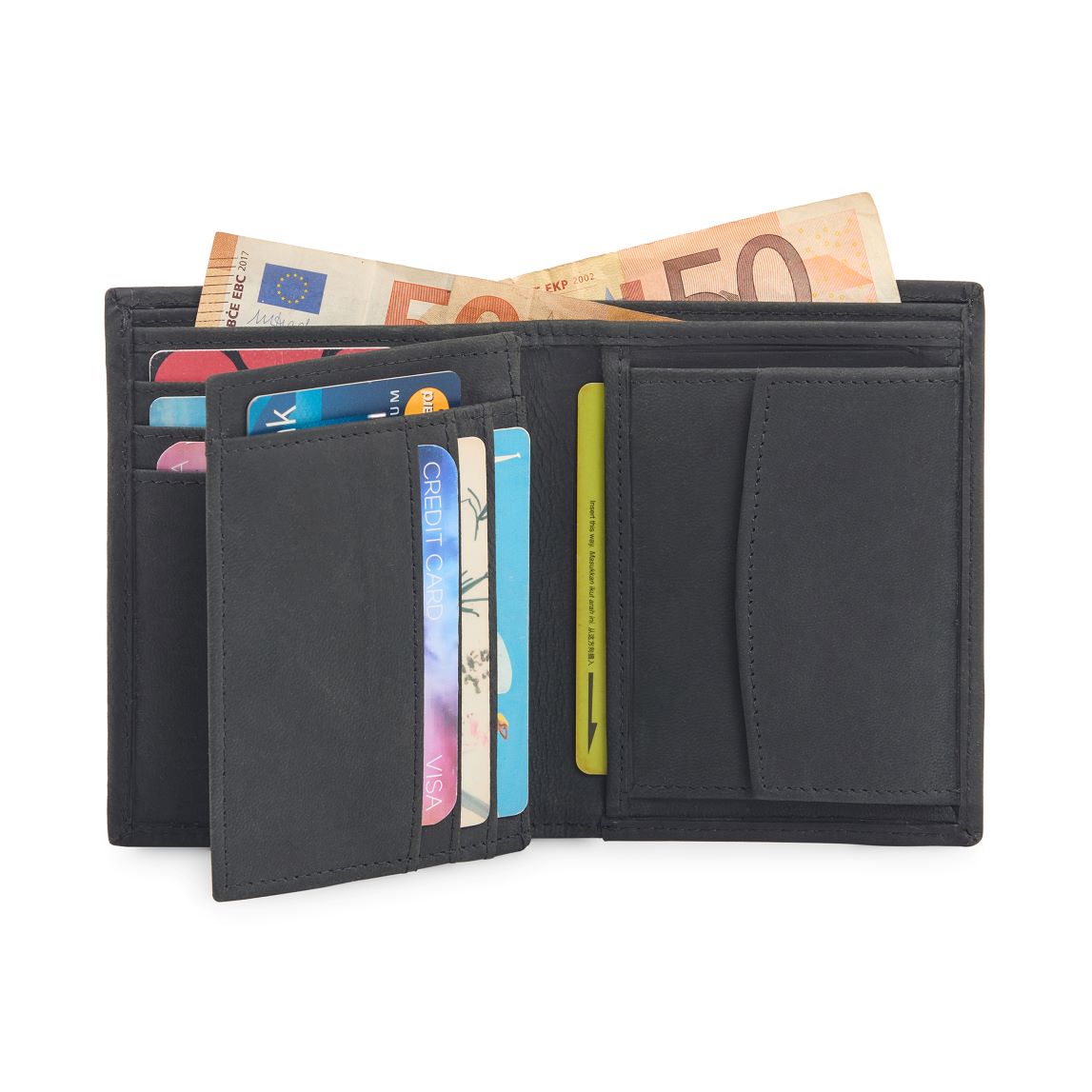 • 2 CURRENCY SLOTS. • 1 COIN POCKET. • 5 SECRET POCKET. • 6 CARD SLOTS. • 1 TRANSPARENT ID WINDOW