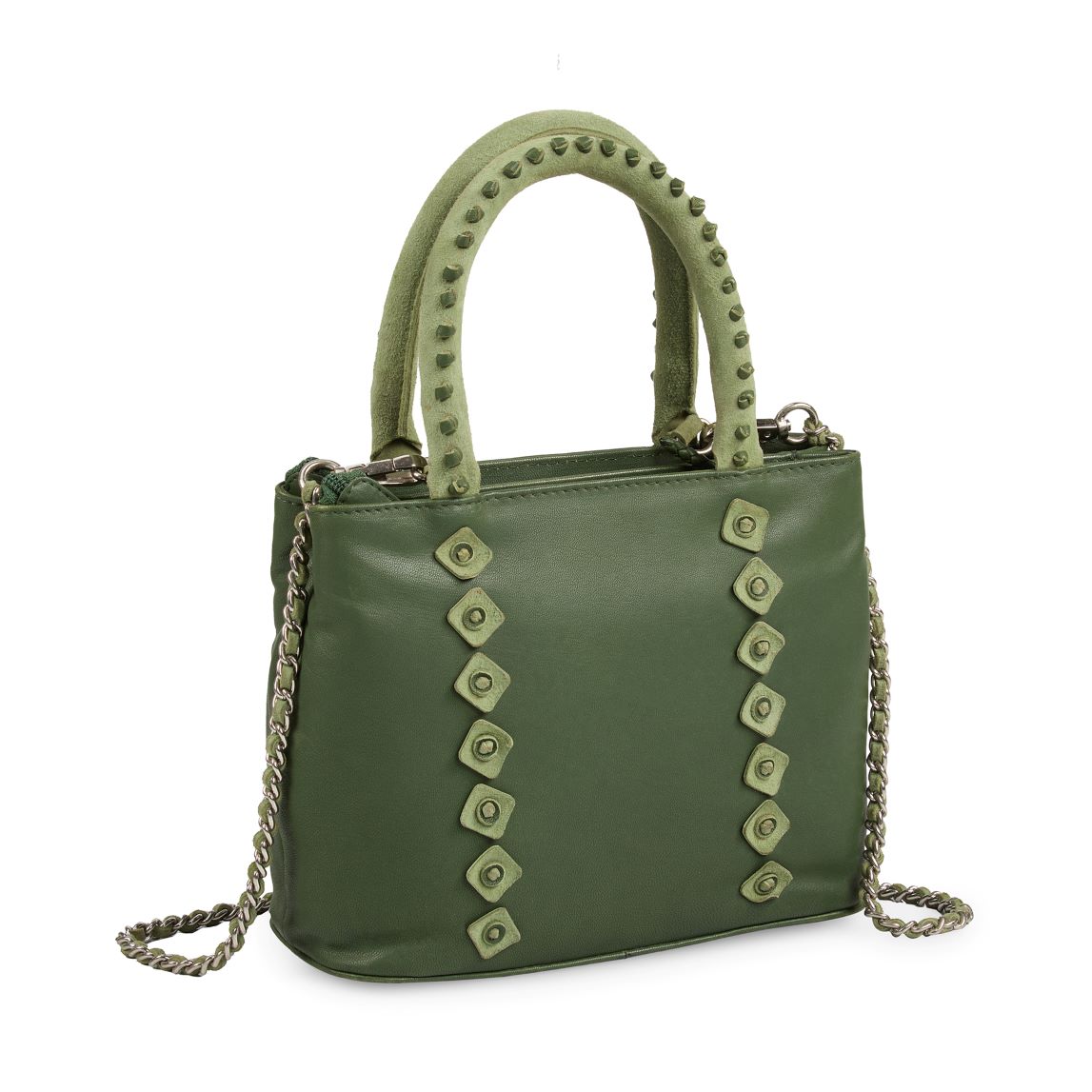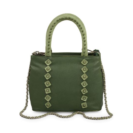 LADIES HANDBAG INSIDE ZIPPER POCKET & MOBILE CASE, HANDLE METAL CHAIN.