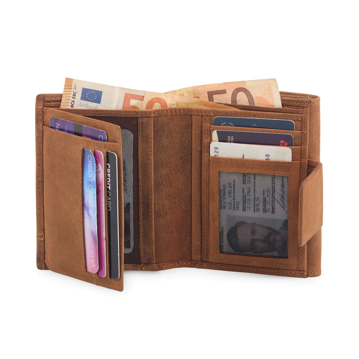 •  1 INNER ZIPPER POCKET. •  3 TRANSPARENT ID WINDOW. •  3 SECRET POCKET. •  2 CURRENCY SLOT. •  2 COIN POCKET •  3 CARD SLOTS. ...