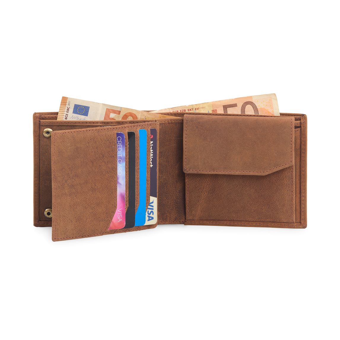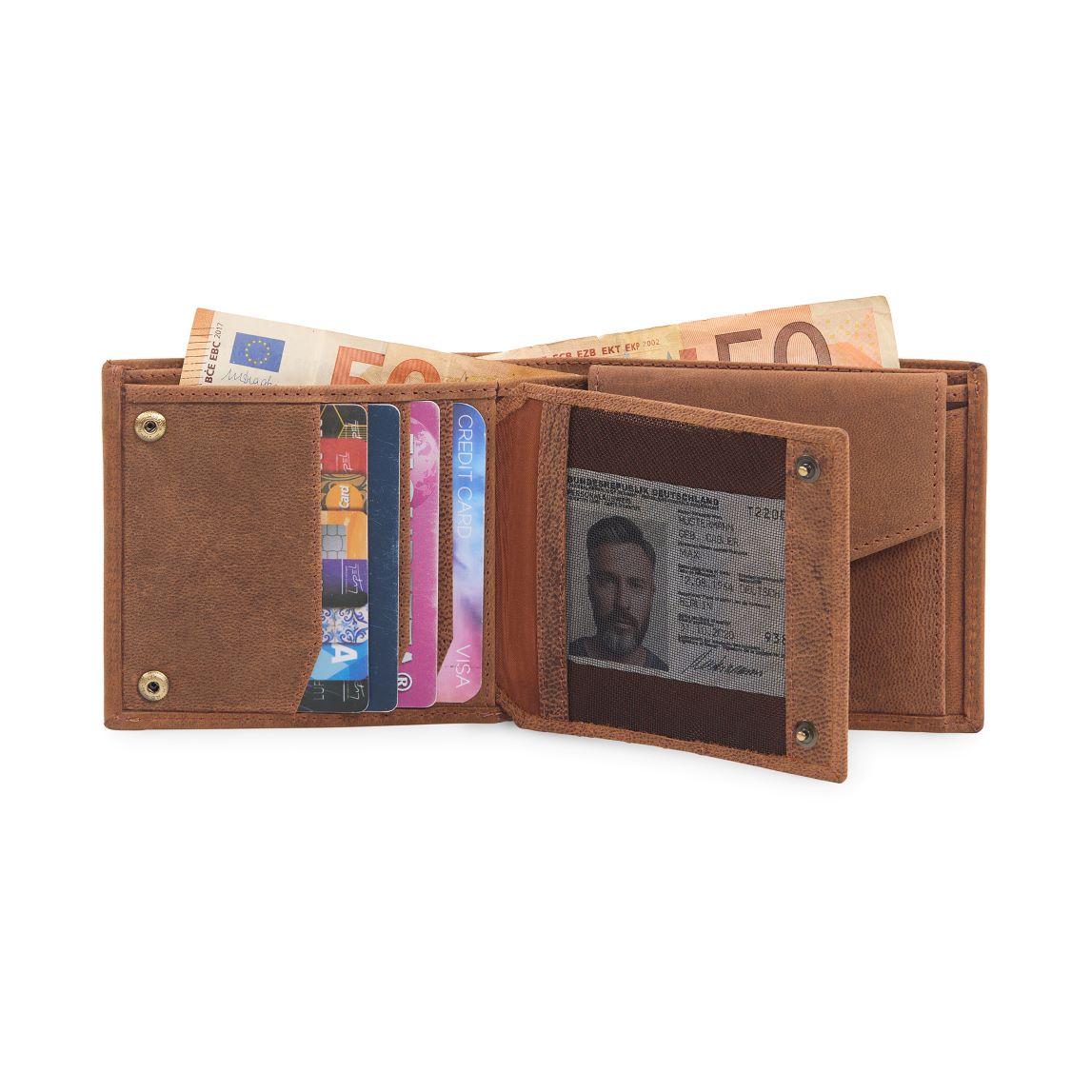 • 2 CURRENCY SLOTS. • 1 COIN POCKET. • 2 SECRET POCKET. • 8 CARD SLOTS. • 1 TRANSPARENT ID WINDOW