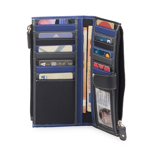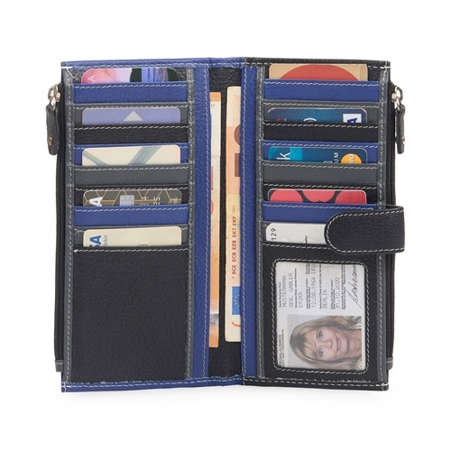 •4 CURRENY SLOTS. •17 CARD SLOTS. •1 TRANSPARENT ID WINDOW. •2 ZIPPER POCKET TO HOLD MOBILE, COIN, KEYS.