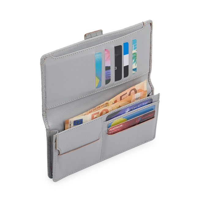 • 1 PROVISION TO HOLD MOBILE. •COIN POCKET •2 CURRENCY SLOTS. •7 CARD SLOTS. •1 TRANSPARENT ID WINDOW. •