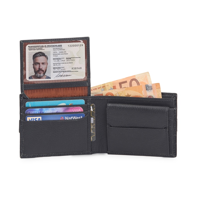 •1 TRANSPARENT ID WINDOW •3 SECRET POCKET. •6 CARD SLOTS. •2 CURRENCY SLOT. •1 COIN POCKET.