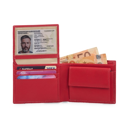• 2 CURRENCY SLOTS. • 1 COIN POCKET. • 3 SECRET POCKET. • 6 CARD SLOTS. • 1 TRANSPARENT ID WINDOW.