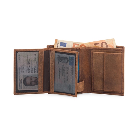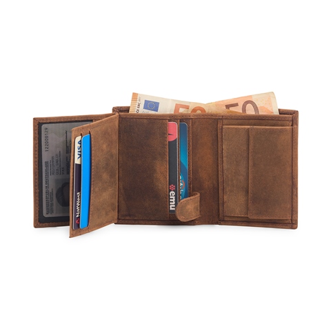• 2 CURRENCY SLOTS. • 1 COIN POCKET. • 2 SECRET POCKET. • 5 CARD SLOTS. • 3 TRANSPARENT ID WINDOW.