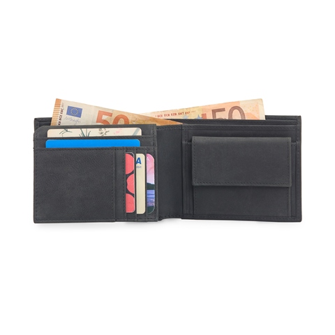 • 2 CURRENCY SLOTS. • 1 COIN POCKET. • 6 SECRET POCKET. • 8 CARD SLOTS. • 1 TRANSPARENT ID WINDOW